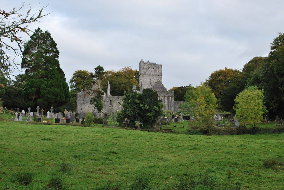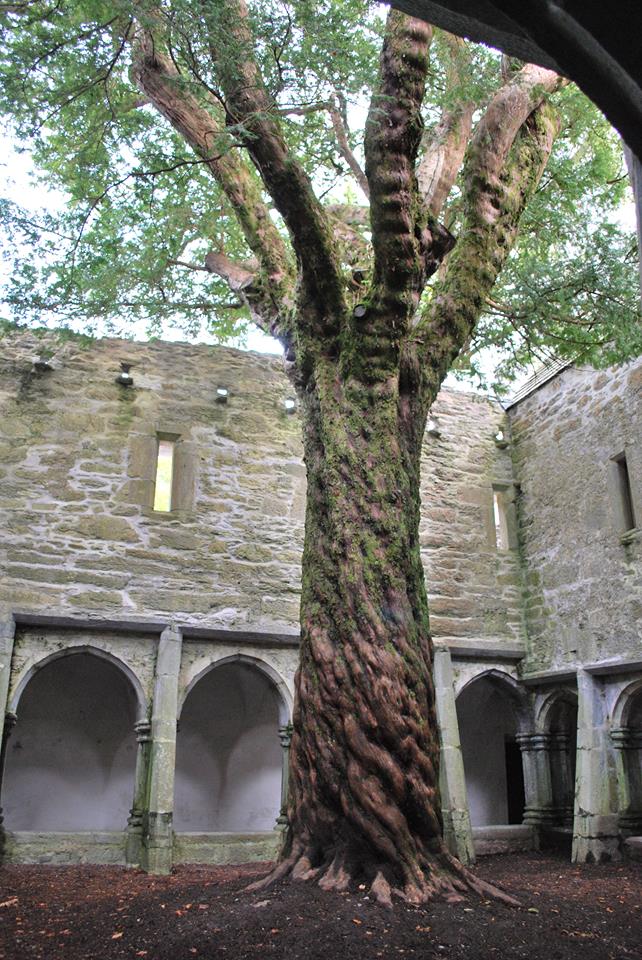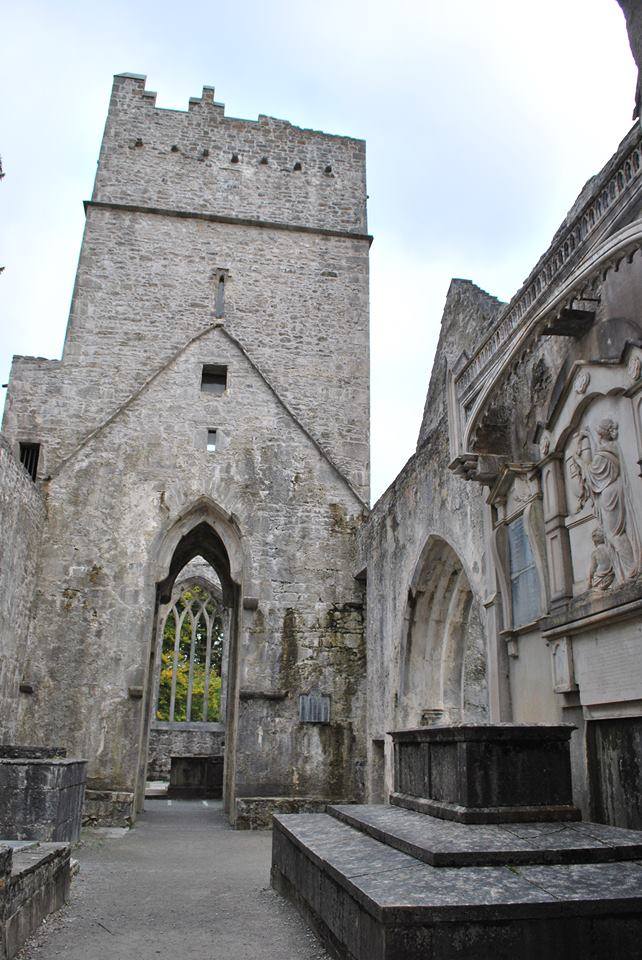 Opatství Muckross Abbey se nachází na malém poloostrově Muckross nedaleko města Killarney v okrese Kerry a je součástí dnešního národního parku Killarney. První klášter zde prý stál už v 6. století, ale byl vypálen. Ruiny na obrázku patří františkánskému klášteru, který zde byl vystavěn později, a to ve století patnáctém. Ani on se nevyhnul pohnutému osudu a hned několikrát čelil útokům nájezdníků. Místní obyvatelé se domnívají, že opatství bylo vystavěno kolem prastarého tisu, (kterých tam roste mimochodem mnoho), který v irské tradici představuje strom života. Zdejší mniši byli definitivně vyhnáni v sedmnáctém století neslavnými cromwelskými jednotkami a klášter byl opět vypálen. Jediné, co vojenské řádění přežilo ve zdraví a nepoškozené, byl právě prastarý tis.