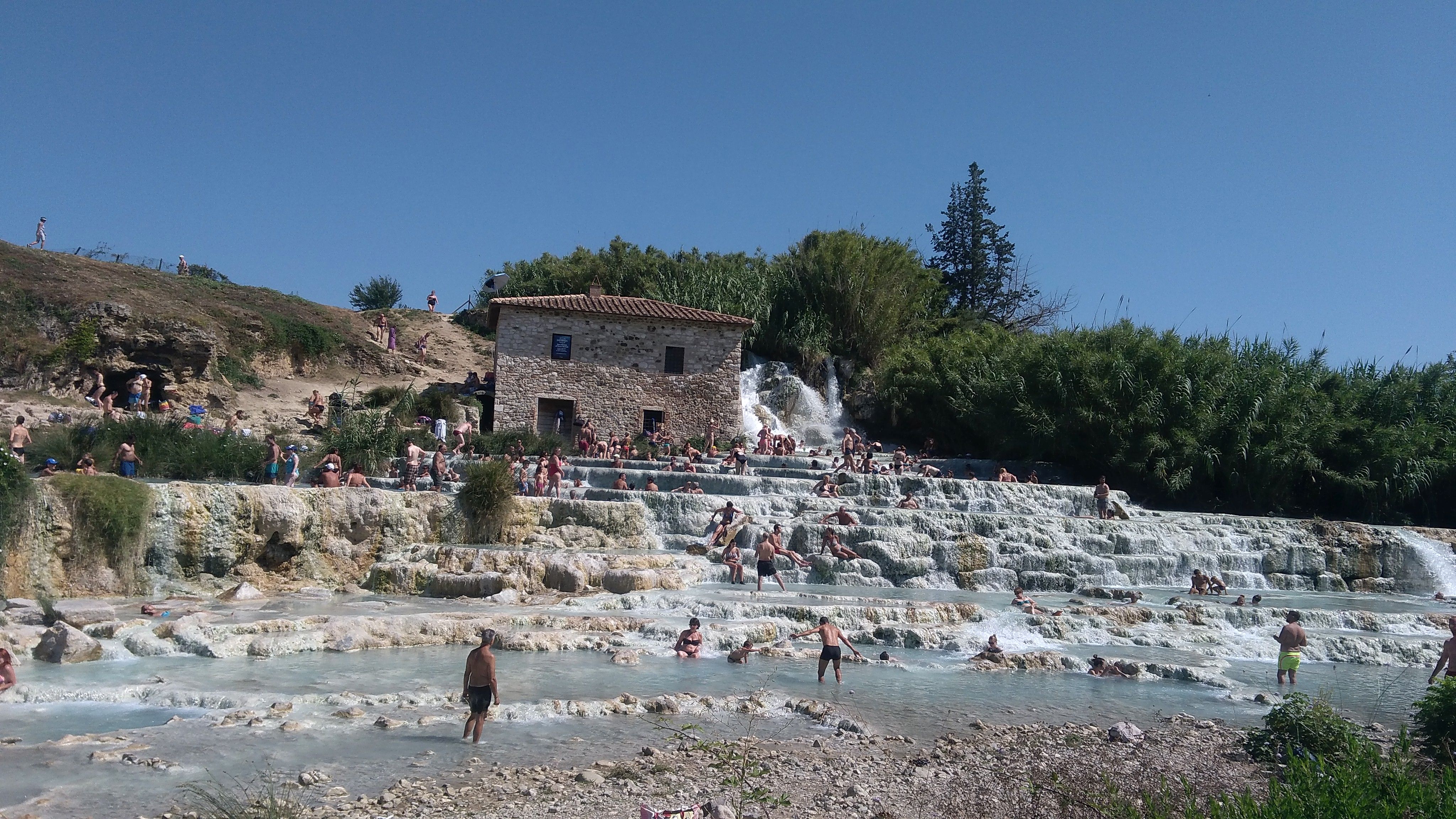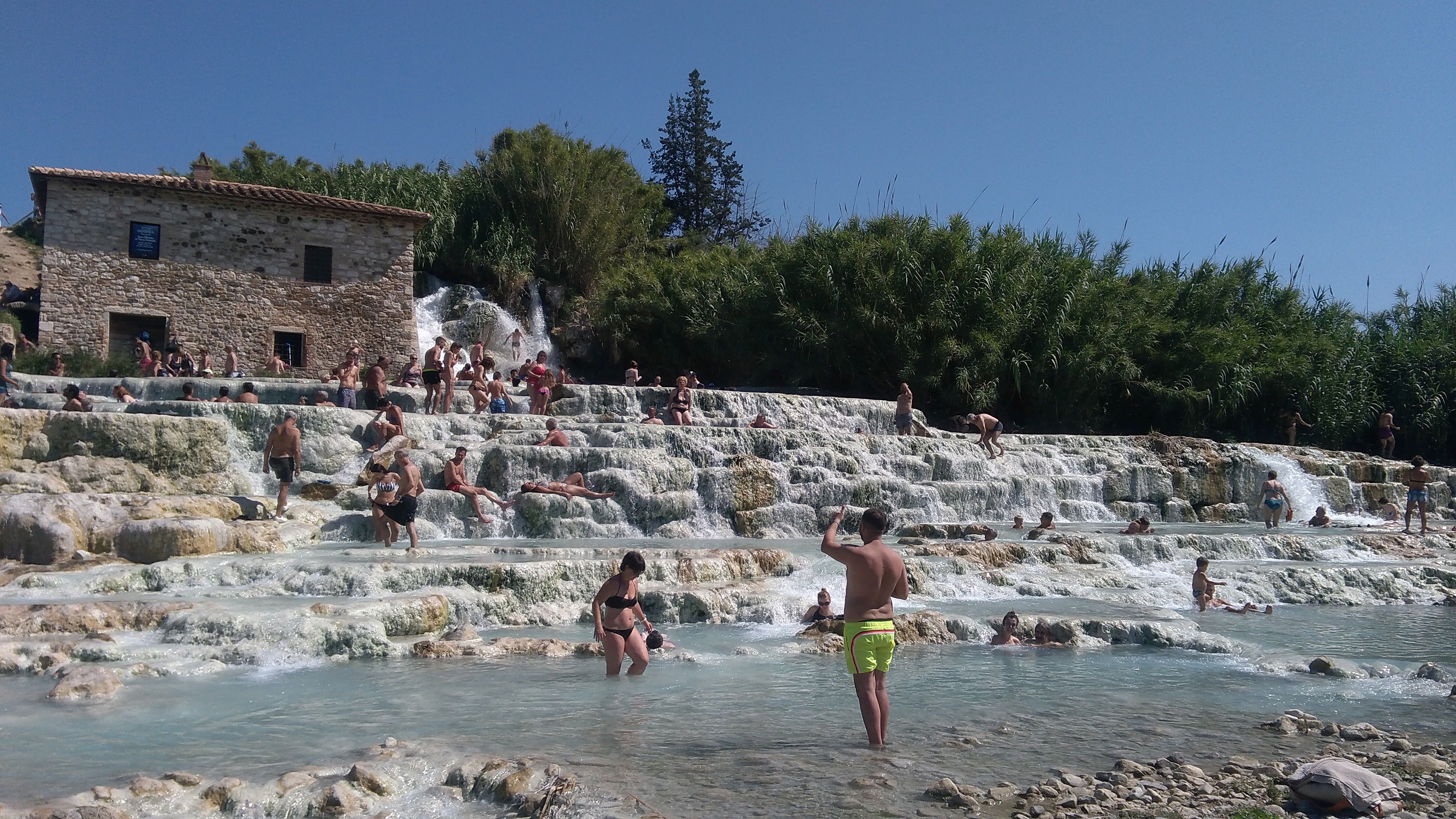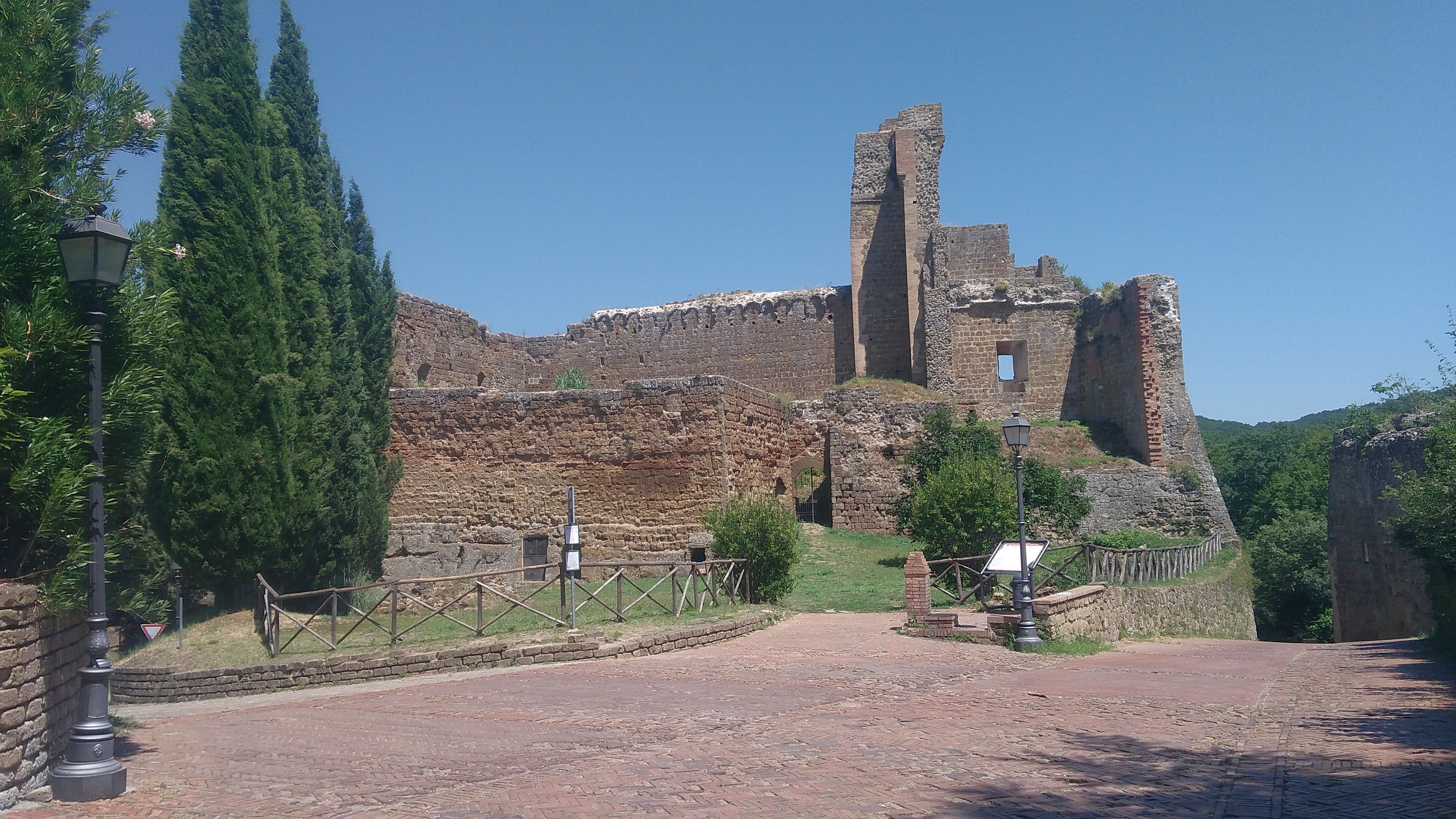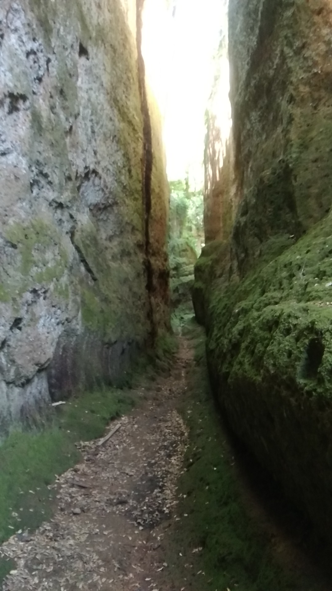 Například etruské cesty vyhloubené na šíři kočáru, ať už pohřebního v nekropolích, nebo povozu se zbožím. Na fotce je cesta vyhloubená už vodou. Ta původní byla usazena mnohem výše. Poznáte to podle hieroglyfů, které jsou po celém území rozesety. Nutno říct, že etruské písmo ale nebylo zcela rozluštěno. Přesto z něj už dnešní archeologové lecos vyčtou. Množství hrobek vytesaných v tufové skále je až neuvěřitelné. Místo nese stopy i po pozdějších, křesťansky založených obyvatelích. To dosvědčují kříže vytesané ve stěnách hrobek. Nekropole musela být obrovská, protože vede až do malebné vesničky Sovana. Na obrázcích je to ta vesnička s hradem. Celou cestu kopírují různé hrobky. K našemu překvapení některé z nich místní využívají třeba jako garáže:) Dalším městem na fotkách je Pitligiano, jedno z nejkrásnějších toskánských měst.