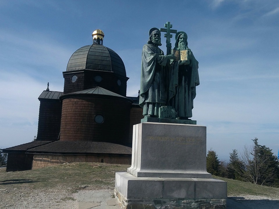 na Radhošť, stejně jako o kus dál umístěné sousoší Cyrila a Metoděje.